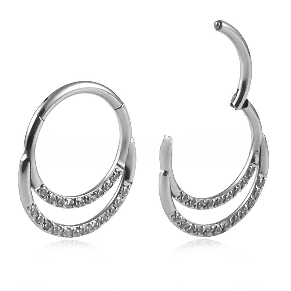 Introducing our charming Double Layered Rhinestones Septum Ring Clicker, designed with two loops elegantly merging at the top to create a single, stylish hoop.