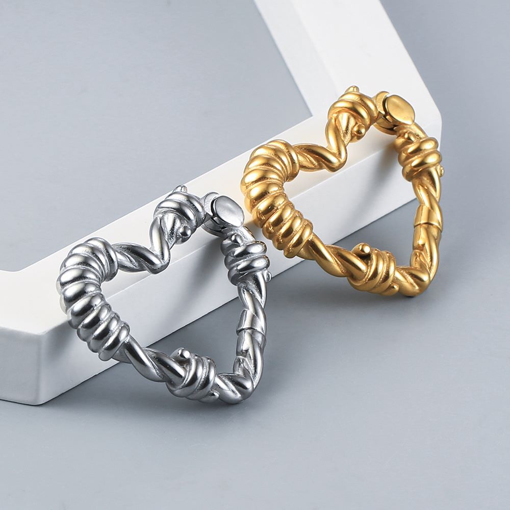 Embrace your inner fearless fashionista with our Heart-Shape Knots Ear Hangers. This bold design is an audacious accessory to showcase your unique style. Offered in silver or gold, these 4g (5mm) hangers will surely capture the attention of all eyes that meet yours. Don't just wear jewelry; make a rebellious statement!